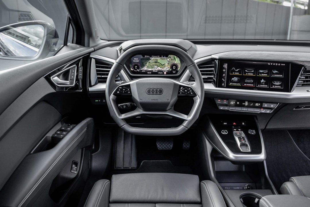 Brendësia e Audi Q4 e-tron është e njohur për cilësinë e lartë, materialet premium dhe fokusin te teknologjia dhe ergonomia, duke ofruar një ambient të sofistikuar dhe të rehatshëm.